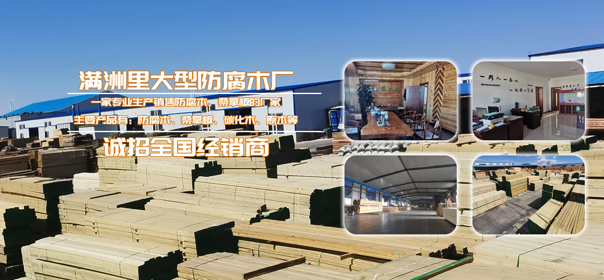 滿洲里松緣木業(yè)有限公司是一家專業(yè)從事戶外防腐木深加工企業(yè)。工廠總占地面積2.4萬平方米,其中廠房占地面積4000平,水泥硬化地面積2萬平方米,防腐木年生產(chǎn)量80000立方米,桑拿板年生產(chǎn)量310000平方米。公司長年貯備充足、刨光材、板材成品防腐木以及各種進口防腐木材。從俄羅斯選材調(diào)運,保證有充足的優(yōu)質(zhì)木材。精選生產(chǎn)加工的樟子松嚴格按照美國AWPA防腐等級標準,經(jīng)過真空加壓浸等15道專業(yè)的木材防腐生產(chǎn)工藝流程制造,使木材具有防腐、防蟲、防霉等功效,已廣泛用于古建筑、木亭、別墅、住宅區(qū)、公園廣場等公共場所。壽命持久50以上。產(chǎn)品售前售后的服務,力求出廠的每件產(chǎn)品都是精品、藝術(shù)品,并在全國設立三十多個市級經(jīng)銷商。